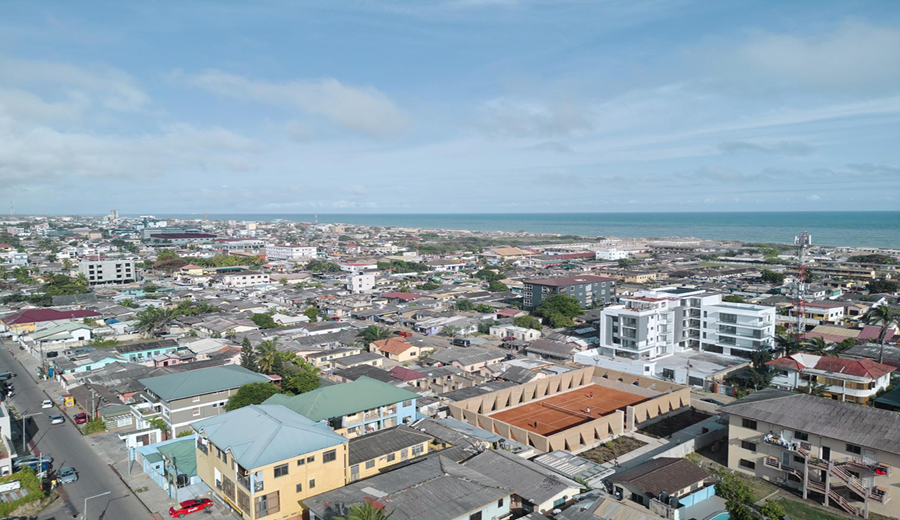 Muros de tierra compactada de 4 metros de altura delimitan esta cancha de tenis, un espacio flexible destinado a actividades comunitarias en el barrio de Osu, en Acra, la capital de Ghana. El proyecto, desarrollado por el estudio local de Glenn DeRoche, incorpora un acceso principal que conduce a un camino pavimentado. A ambos lados de este recorrido se extiende un huerto con más de veinte especies de plantas comestibles y medicinales, que ofrece a los jóvenes de la zona un lugar para el cultivo y el aprendizaje.