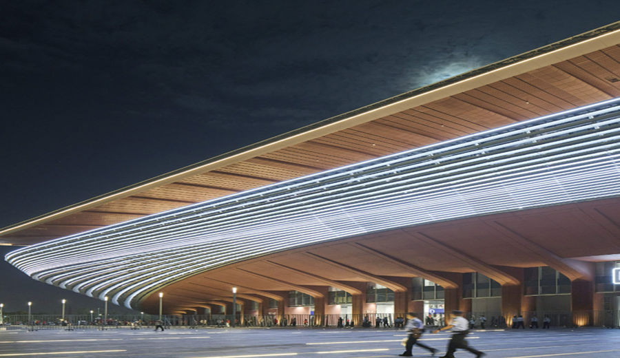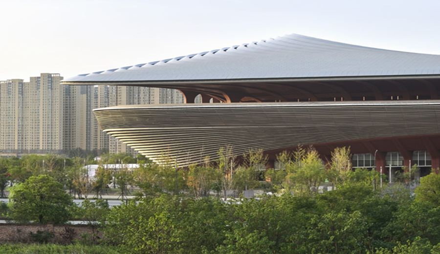 Una estructura de techo ultraligera de malla de cables de gran envergadura genera cargas mínimas, lo que reduce significativamente la huella de carbono dentro del estadio al minimizar los materiales necesarios para su estructura principal. El amplio perímetro del techo sobresale por encima de las instalaciones dentro de la envolvente del edificio, mientras que las amplias terrazas al aire libre y sombreadas, así como los vestíbulos públicos, ofrecen condiciones confortables durante los calurosos veranos del clima continental de Xi’an.