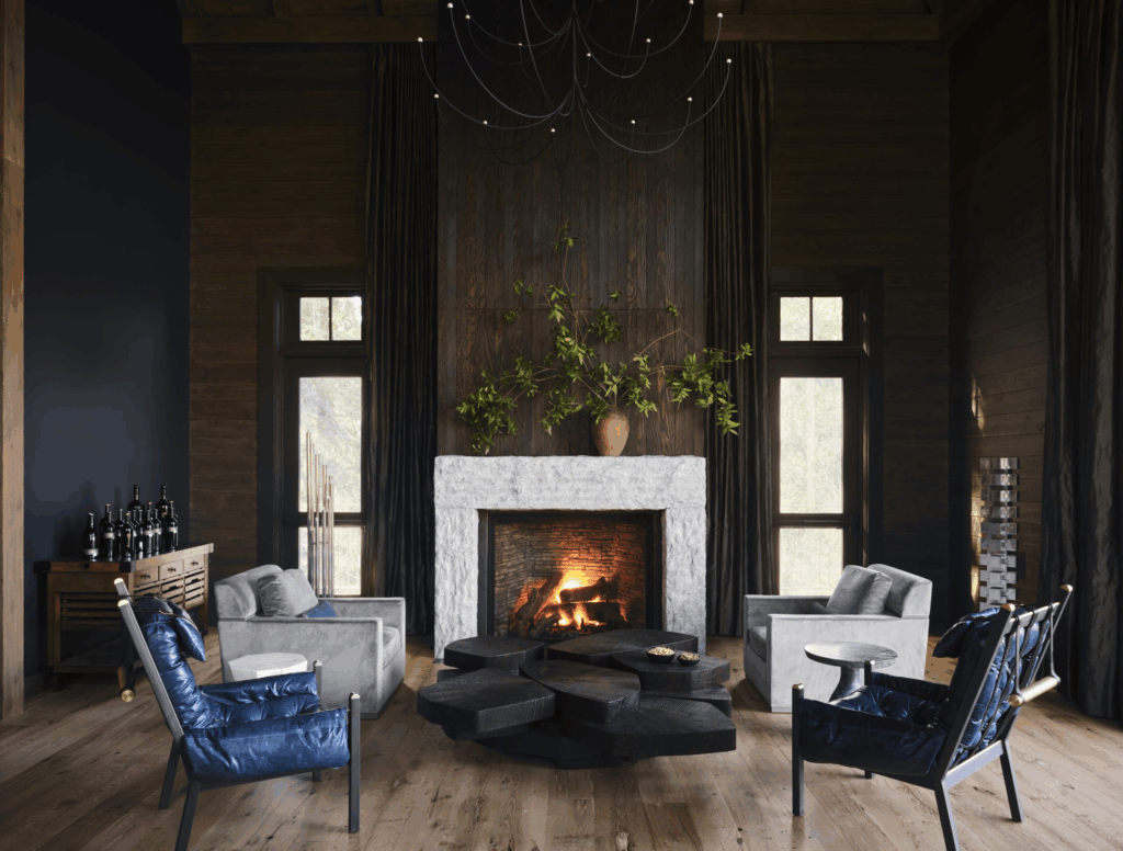 Ubicado en un rincón apartado de la finca, al borde de un acantilado escarpado, el granero se encuentra aislado del resto del programa de hospitalidad. Los amplios ventanales dan a los espacios públicos centrales de la propiedad, lo que amplifica la sensación de aislamiento y crea una experiencia completamente diferente para los huéspedes.