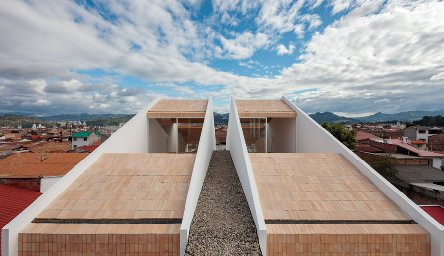 Con el objetivo de optimizar al máximo los espacios en el estrecho lote se empleó un sistema estructural de muros y losas de hormigón armado en los bloques de vivienda; y perfiles de acero en las circulaciones. A esto se sumaron materiales tradicionales de baja energía incorporada como el ladrillo artesanal, utilizado en mamposterías de fachadas, pisos exteriores y cubiertas; y el carrizo en el cielo raso de áreas sociales.