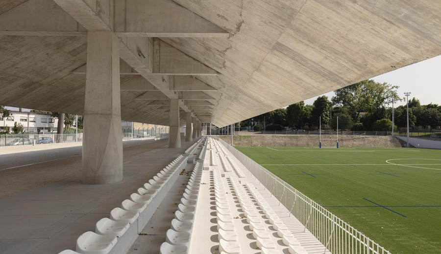 El estudio lisboeta Domitianus Arquitetura —dirigido por Paulo Tormenta Pinto y Rosa Maria Bastos—, ha sido el autor de la intervención en la mitad norte del Parque Deportivo Ramalde, en Oporto. El proyecto incluye la construcción de un nuevo campo de rugby y fútbol, un edificio de apoyo con vestuarios y servicios, una tribuna cubierta, una zona de atletismo y un espacio específico para la práctica del tiro con arco.